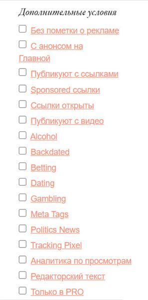 Додаткові умови. Можна знайти сайти, які розміщують тексти без позначки про рекламу, публікують анонс вашої статті на головній сторінці сайту, що розміщують прямі посилання на вас, які надають аналітику з переглядів.