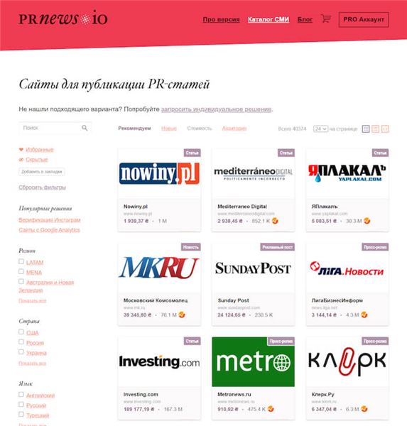 PRNEWS.IO - це сервіс, який полегшує взаємодію бізнесу з журналістами. Він може суттєво полегшити та прискорити роботу вашого PR-відділу. За допомогою PRNEWS.IO можна розповсюджувати прес-релізи, рекламні статті, новини в десятки та сотні видань, тим самим збільшувати впізнаваність бренду, а також отримувати зворотні посилання та море трафіку.