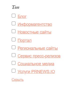 Тип сайту. Можна розміщувати статті на блогах, сайтах новин, інформагентствах, порталах, регіональних сайтах, сервісах прес-релізів, соціальних медіа.