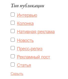 Тип публікації. Через PRNEWS.IO можна розміщувати не тільки прес-релізи, але також інтерв'ю, тематичні стовпчики, нативну рекламу, новини, рекламні пости, інформаційні статті.